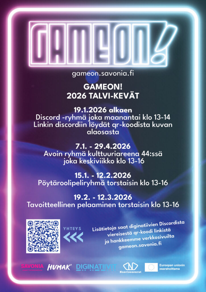 Vieläkö kutkuttaisi lähteä mukaan GameON-hankkeen toimintaan? Tässä tärpit kuluvalle vuodelle:
