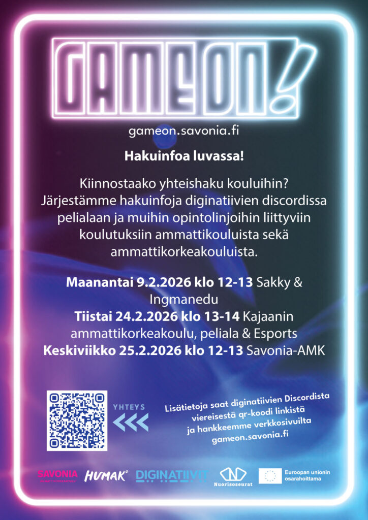GameON-hanke järjestetään 1.4.2024 – 30.6.2026, ja sen rahoittajina toimivat Etelä-Savon ELY-keskus sekä Euroopan Unioni.