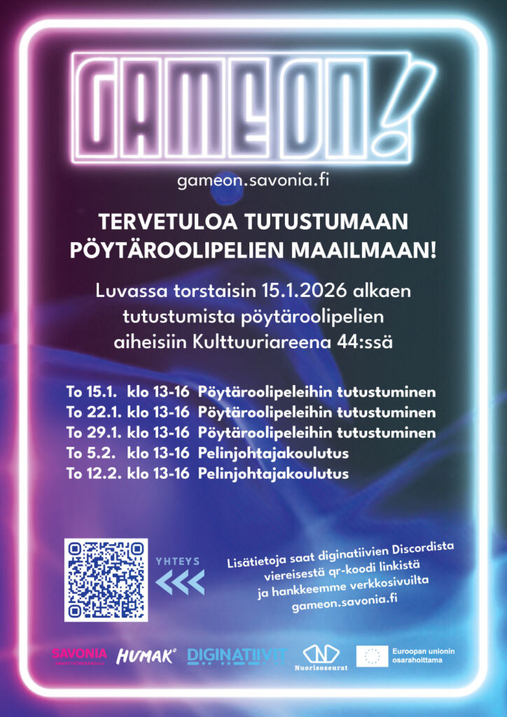 The GameON project will take place from April 1, 2024, to June 30, 2026, and is funded by the South Savo Centre for Economic Development, Transport and the Environment (ELY Centre) and the European Union.
